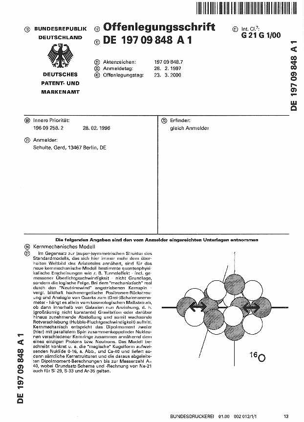 bei niedrigenergetischer Gamma-Anregung zur Neutronenquelle. Die zweiwertige chemische Valenz des ansonsten spinkompensierten Atoms ergibt sich übrigens erst aus der inneren Verwindung zu einer Acht!