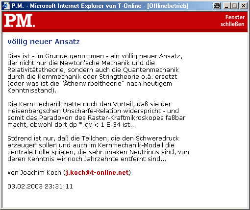 was zur gesuchten Gravitationskraft führen würde. Im atomaren Bereich sorgten die gleichen oder ähnliche "Neutriniden" für eine Abtastung bzw. Abbildung der Elementarteilchen und ihrer Schwingungen