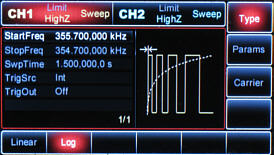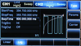 Während am Anfang noch ein relativ eng gefasster gemeinsamer Sweep-Bereich von 354 KHz - 384 KHz (Ausgang A) sowie von 355 KHz - 385 KHz (Ausgang