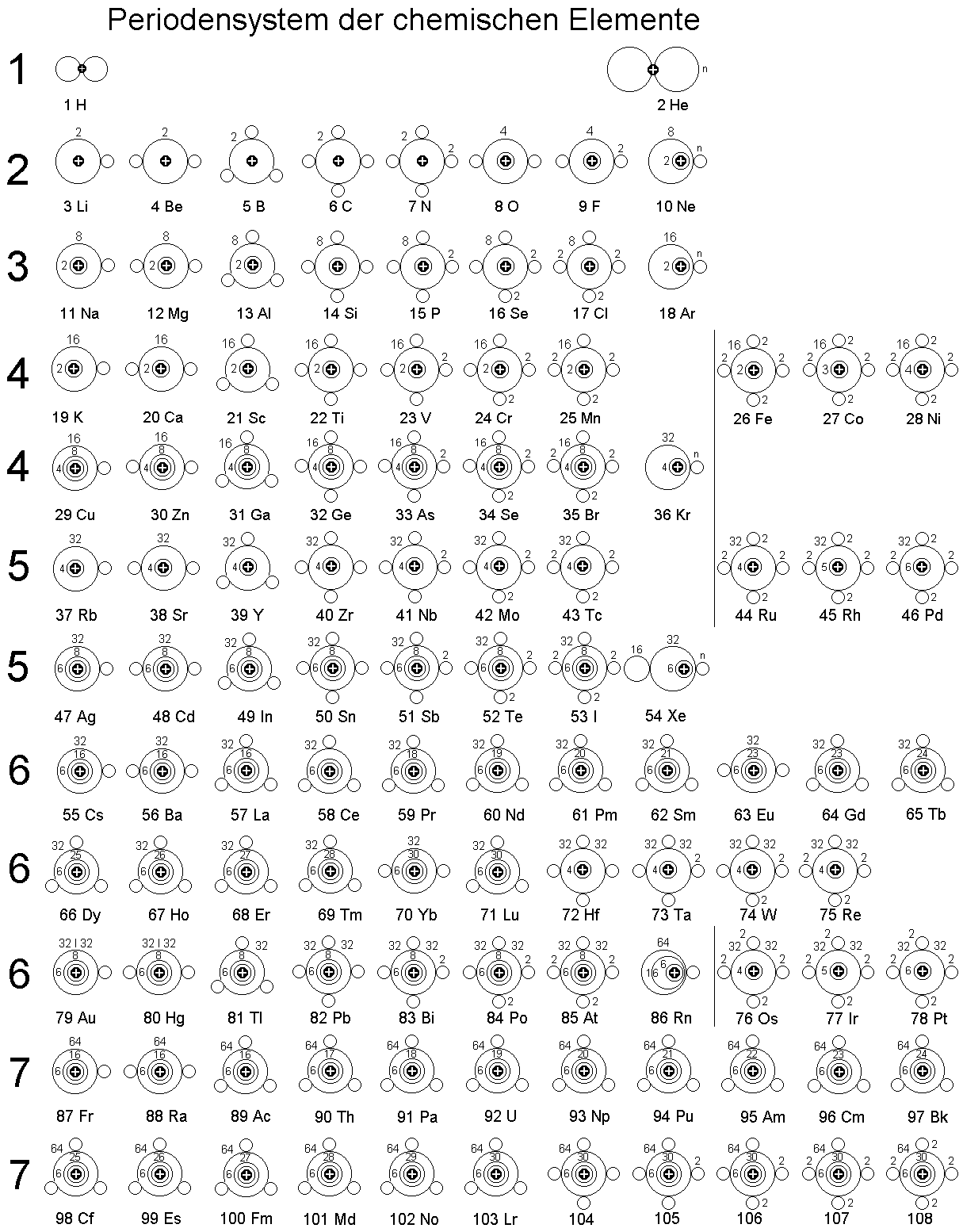 Da die Elektronenringe (“Schalen”) nacheinander jeweils doppelt ausgebildet werden können, reicht dieses sehr einfach strukturierte