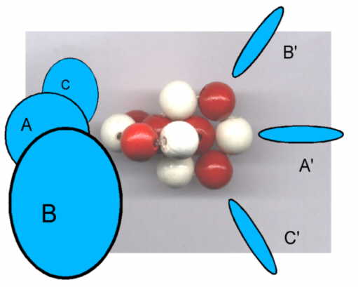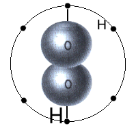 angeordnete Elektronenringe gibt, - dank dem Wasserstoff - aufgestockt auf je vier Elektronen. - Elektronen-Orbitale des Wassermoleküls mit zwei senkrecht aufeinander stehenden und mit einander synchronisierten Vier-Elektronenringen. Der