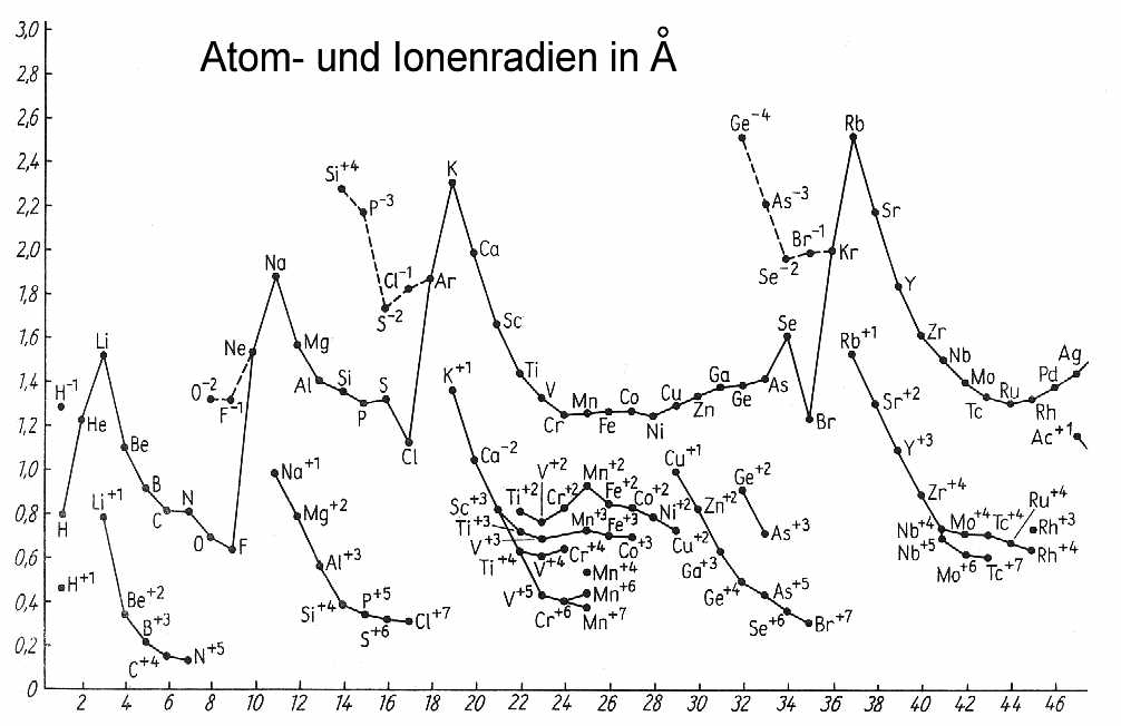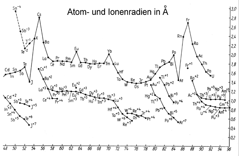 In der ganz konkreten Anordnung aller Ringelektronen erkennt man nun sofort, warum etwa der Atom- und Ionenradius beim Übergang von der