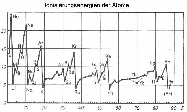 wurde, lassen sich insbesondere bei den Alkalimetallen aus der Besetzung der Elektronenringe mit Elektronen alle Parameter unmittelbar ableiten.
