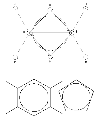 diamagnetische 2-Elektronenringe ausbilden würden. Da aber hier - im Gegensatz zu einem Benzolring mit sechs Elektronen - in der Ebene