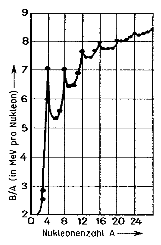 in ihrer Bindungsenergie besonders ausgezeichneten Isotope He-4, Be-8, C-12 (2x 6), O-16 (2x 8), Ne-20 (6 + 8 + 6), Mg-24 (3x 8), Si-28 (6 + 8 + 8 + 6).6