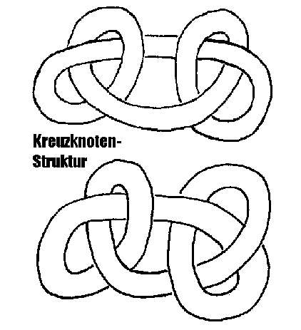 Bei längerer Kette wird dieser Effekt erst durch einen und dann beim Blei durch zwei stabilisierende Knoten(-umschlingungen) in der Kette verhindert, wodurch dort letztlich so etwas wie eine doppelt geflochtene feste Kranzstruktur (oder ein Ring zweiter Ordnung) entsteht. Genauso können die charakteristischen Eigenschaften etwa von Uran, insbesondere was die Spaltbarkeit anbelangt, z. B. direkt aus seiner Kreuzknoten-Struktur abgeleitet werden (4, s. Abb. rechts).