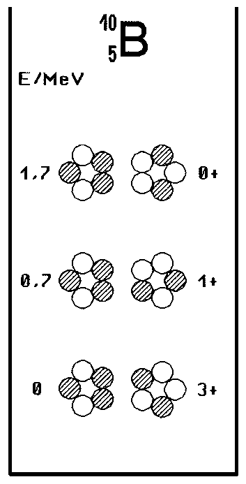 Fig. 2 das Termschema von B-10 in einer schematisch realistischen 2-D-Darstellung der jeweiligen Anordnung der Kernringe im