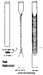 der dann bei der Dehnung eines stabförmigen Zink-Einkristalls in Gestalt der charakteristischen Gleitebenen wiederum deutlich zu Tage tritt.” 7