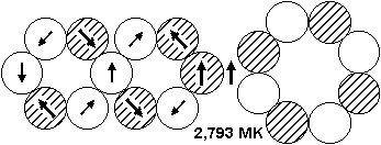 Nukleonen - wie bei He-4 - fast im rechten Winkel zueinander, wobei es im Gegensatz zu diesem hier nur eine Spinpaarung gibt und das ungepaarte Nukleon das resultierende Kernmoment deshalb nahezu allein bestimmt.
