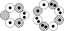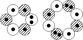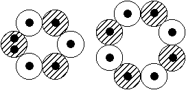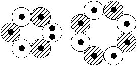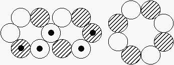 Demnach gründet folglich auch das N-14-Nuklid auf einen 8er-Kernring - mit sechs doppelt besetzten Orbitalen, siehe rechts -, wobei die beiden