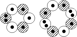8er-Ring - einzeln nicht planare B-11-Struktur und ebenso die ganz analog aufgebaute, zunächst lediglich aus sieben Nukleonen bestehende Li-7- bzw. (komplementäre) Be-7-Struktur, aus denen jeweils nicht nur die eigenen Kernmomente abzuleiten