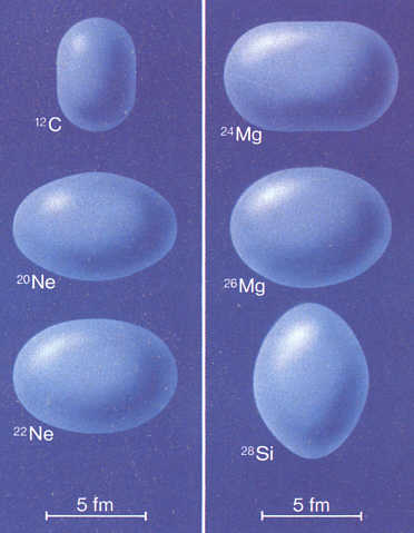 äußeren Dimensionen von C-12 und Si-28 systematisch etwas zu klein ausgefallen sind, da hier fälschlich von einem negativen Quadrupolmoment ausgegangen wurde. So gesehen paßte es durchaus zum ermittelten