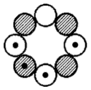 Mit einem (beiden Ringen gemeinsamen) mittleren Neutron und einem dieses umschließenden weiteren 6er-Kernring, Be-6- bzw. Li-6, führt die