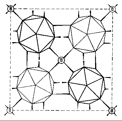überzeugen, daß das Modell an dieser Stelle “auffallend” stimmt. Außerdem bestätigt es ebenfalls noch die frühere Vermutung, daß das verbindende mittlere “Boratom” zwischen jeweils vier B12-Ikosaedern beim tetragonalen Bor I in Wirklichkeit nur ein Kohlenstoffatom sein kann.