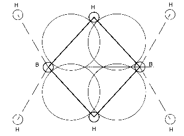 ursprünglichen 144° des Kernringes entfernt und mehr dem Tetraederwinkel von 109,5° angenähert haben, ist sozusagen noch klassische Chemie. Für die mittleren H-B-H-Winkel in Höhe von 97° gibt es aber nur